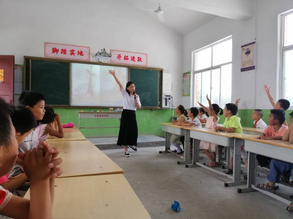 支教团还开展了绘本课和卫生课。对于小学低年级同学来说,绘本既能带来有趣的故事,还能发散员工的想象力和创造力。通过简单的几幅图画,构成一个意义深远的小故事。在绘本课堂上,支教老师穿插各种环节的活动,如音乐的节奏练习、律动活动、语言活动、心理建设等。在有限的课堂和时间中开阔孩子的眼界,扩大其知识面。讲卫生是身体健康的重要保障,对于发展相对落后的农村地区,向孩子普及基本的卫生知识,帮助其养成良好的卫生习惯就显得尤为重要,支教团向孩子讲授的卫生小知识,也更好的帮助孩子们健康成长!