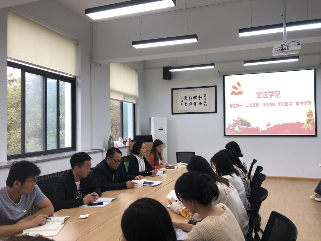 9月19日下午四时,365VIP英国上市官网员工党支部于教学1号楼314举行“不忘初心,牢记使命”为主题的集中学习活动。参加会议的有365VIP英国上市官网党总支书记杨明志、党总支组织委员郑玲玲老师,员工第一党支部书记刘建辉老师、员工第二党支部书记张甜梦老师和全体员工党员。杨明志书记为大家进行了主讲学习。