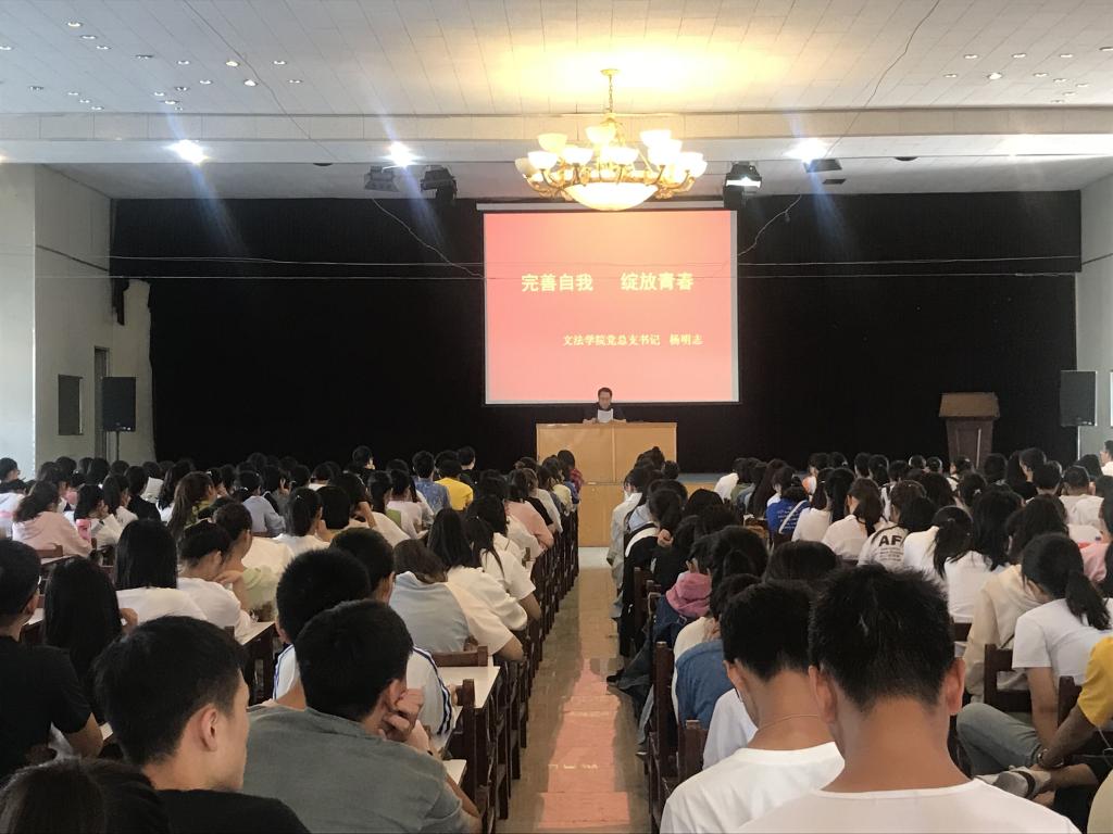 9月26日上午,365VIP英国上市官网党总支杨明志书记在龙湖报告厅为公司2019级全体新生做题为《完善自我,绽放青春》的入学报告。