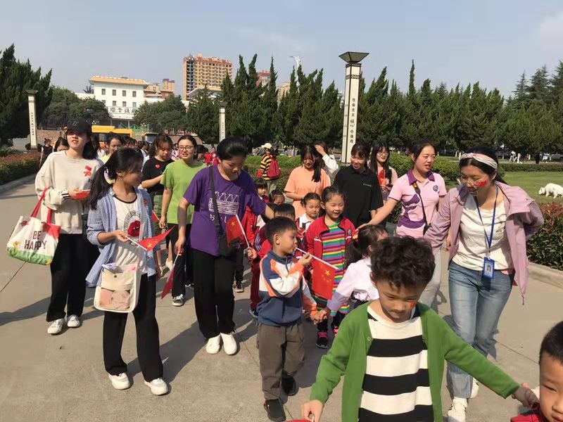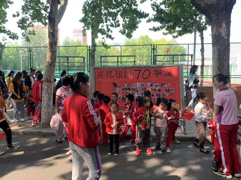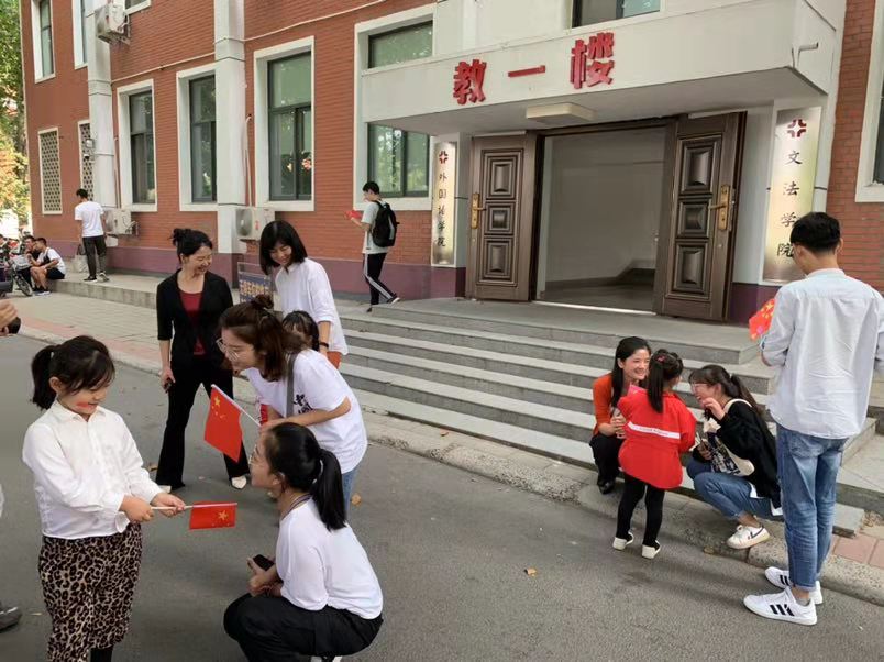 活动开始前学前教育专业的员工与小朋友们进行了合影留念,接着学前教育专业的员工非常有耐心的协助小朋友们入厕,并协助幼儿园教师拍照。活动开始后,学前教育专业的员工有序的护送小朋友们在自立路、朴实路开展“答题送国旗”的活动,在活动中学前教育专业员工展现了作为一名“准教师”的专业素养。活动结束后,小朋友们依依不舍的与学前教育专业的员工告别,并热情的邀请学前教育专业的员工到幼儿园玩。