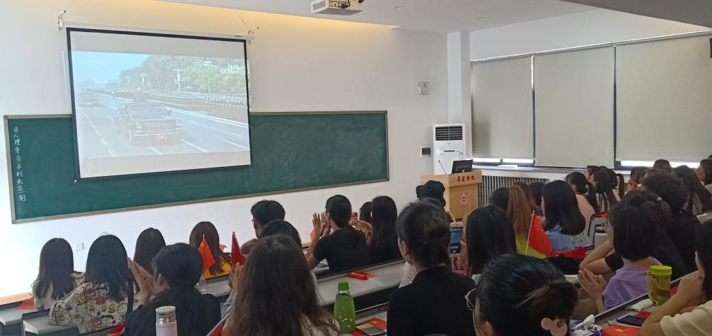 积极分子代表邹诗佳说到:观看阅兵,满腔热忱,热泪盈眶。1949年,中华人民共和国成立,到2019年,中华人民共和国70华诞。从1949到2019,时间见证,盛世如愿。承先辈之鼎力,并当代之奋力,如今国泰民安,山河焕新颜!当看到整齐划一的人民军队步步向前时,心中唯有震撼,自豪且骄傲。当看到1949名青年高举巨幅国旗通过天安门时,想到梁启超的那句“少年强,则国强”。作为新时代青年的我们,将担起重任,为中华民族的伟大复兴而奋斗。愿以寸心寄华夏,且将岁月赠山河!祝祖国母亲生日快乐,我爱我的祖国!
