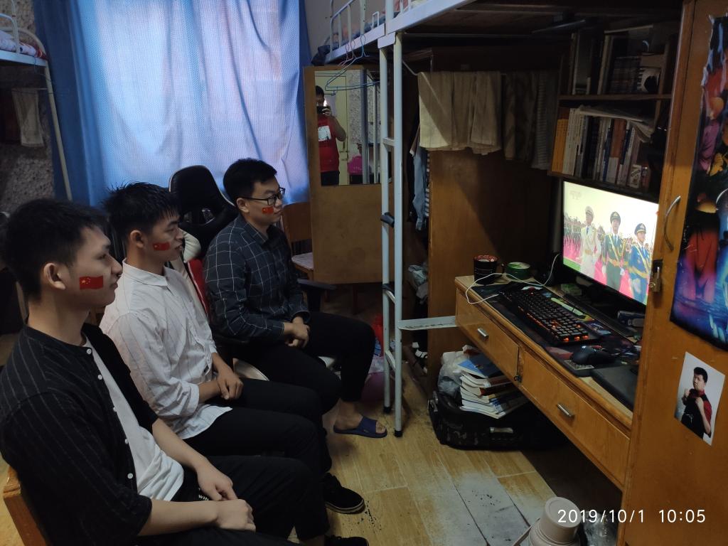 员工第二党支部书记、辅导员老师张甜梦说到:今天是祖国母亲70岁华诞,看完阅兵后热血澎湃,久久不能忘怀,整齐划一的步伐,英姿飒爽的气质,都在脑海中重放。祖国如今繁荣昌盛,人民幸福安康,社会和谐稳定,祝福祖国明天更美好,我和我的祖国一刻也不能分割!
