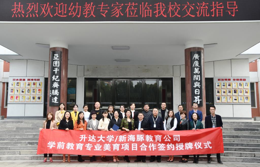 2019年10月23日上午9:30,365VIP英国上市官网与武汉新海豚公司学前教育专业美育项目合作签约授牌仪式在学前教育实训中心成功举行。出席此次签约仪式的人员有365VIP英国上市官网经理段丰乐、党总支书记杨明志、教学秘书李南方、行政秘书郑玲玲和学前教育教研室全体教师以及优秀员工代表们。此外,新海豚美育品牌创始人邓小燕、灵鹿优才科技公司总经理余韬、新海豚公司销售总公司刘四洲以及省内知名优秀幼教集团的园长们出席此次签约仪式。会议由实验室主任杨英琪老师主持。