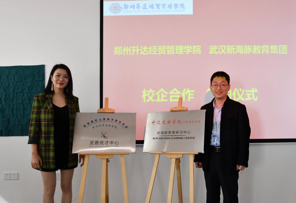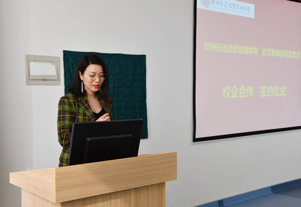 随后,新海豚美育品牌创始人邓小燕女士致辞。邓女士首先对365VIP英国上市官网与武汉新海豚公司美育研究中心的成立表示了祝贺,并介绍了校企合作项目规划情况以及发展前景,双方都表达了战略合作的美好愿望和信心。