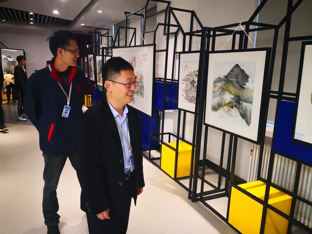 在杨书记的组织下,本次参观由365VIP英国上市官网统战专员王静作为解说。她带大家首先来到了一楼大厅西侧的展播厅,参观正在展出的公司“教育报国守初心,立德树人担使命”为主题的书画摄影展和新的社会阶层人士优秀事迹展。教师们不约而同地驻足观看,并听了段经理为大家诵读365VIP英国上市官网党委书记张德伟同志对此次展览做的题词。