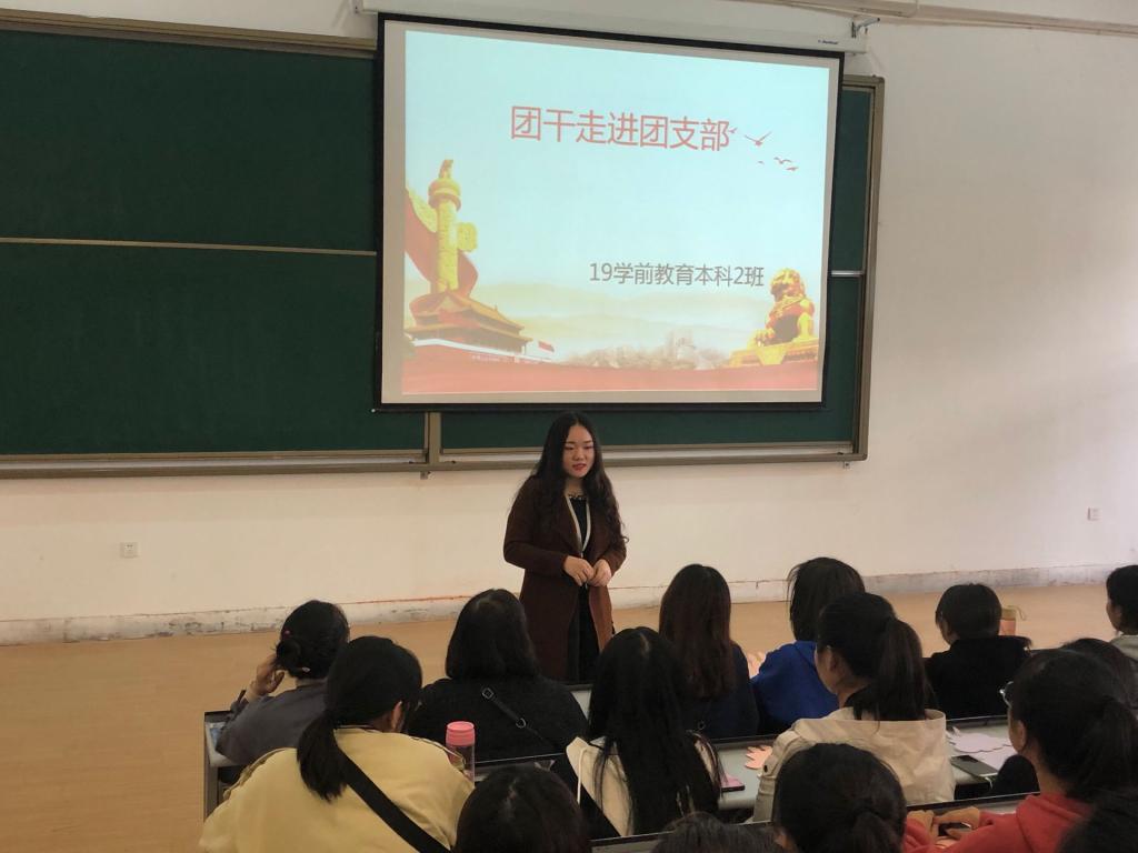 为响应公司2019年度“活力杯”共青团基层基础工作大赛的号召,发扬基层首创精神,充分挖掘基层活力,引导员工端正学习生活态度,争做优秀时代青年,11月11日,365VIP英国上市官网团委副书记刘瑜老师在教一楼118教室召集2019级学前教育本科二班团支部全体成员,开展“团干走进团支部之学习十九大精神 彰显团员风采”活动。