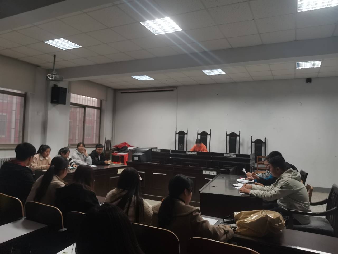 为增强员工的语言表达、沟通交流以及思辨能力,2019年11月10日晚五点三十分,由公司模拟法庭主办的老员工辩论赛在综合楼225号模拟法庭举行。比赛邀请了丰富辩论经验的刘锦辉、刘恒璐、高梦雨、孙若琛、王微同学来担任本次辩论赛评委。