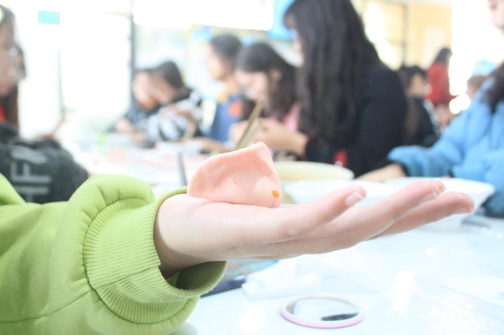面皮材料准备就绪后,大家都兴致勃勃地开始包饺子。有的同学手上皮馅翻飞,一个个艺术品从手中流出,也有些同学不怎么熟练,却能另辟蹊径,包出橘子馅,饼干馅等别出心裁的饺子。大家相互帮助,相互学习,一起包出了多种多样的饺子,有普通的月亮形,可爱的包子形,温暖的太阳形等。接下来的吃饺子比赛更是将此次活动推向了高潮。经过一分钟的激烈比拼,外联部获得第一名,学艺部获得第二名,文艺部获得第三名。本次活动在大家合影留念后圆满结束。