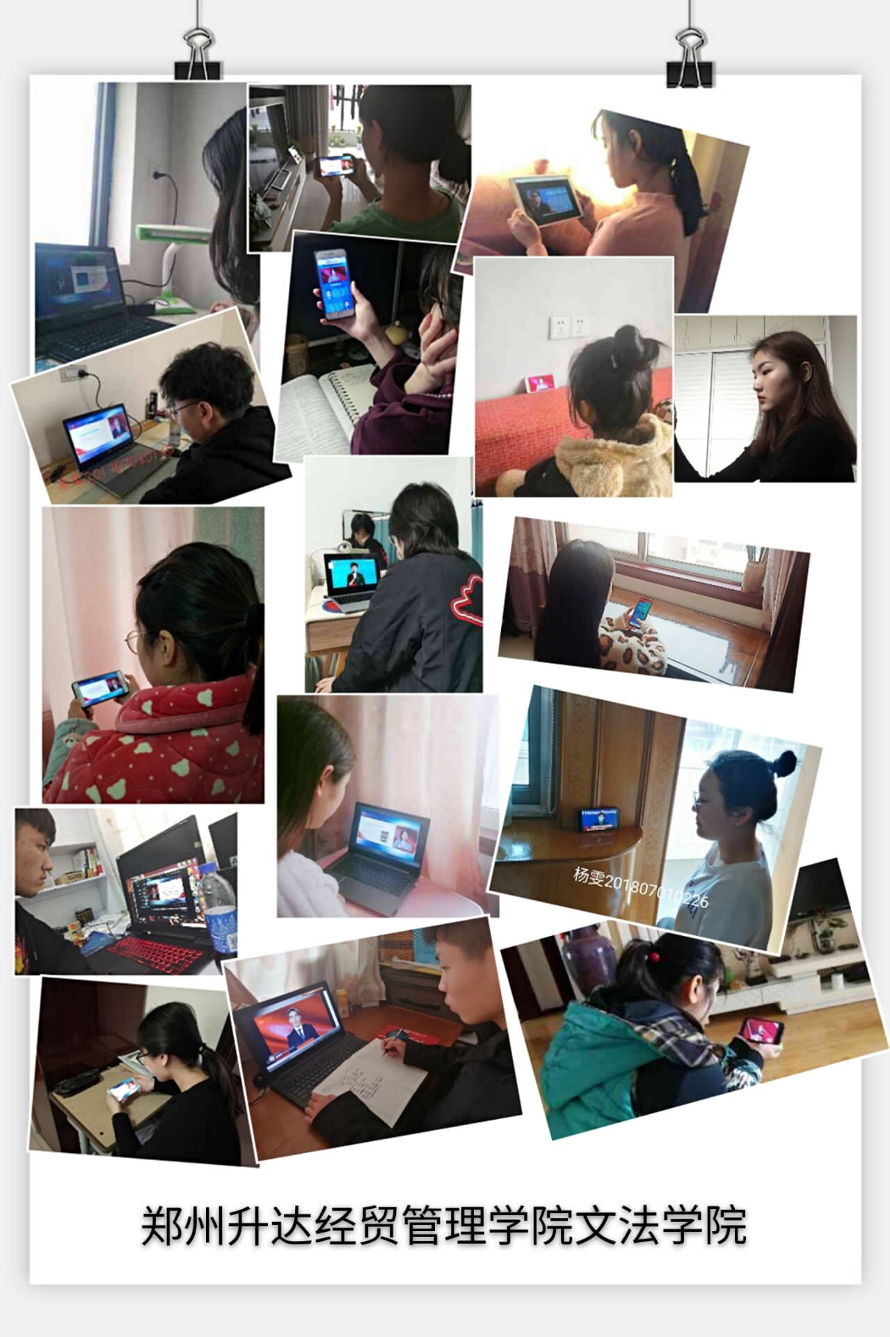 17级法学二班班长闫毅啸说:“相信祖国的伟大,也相信党的正确指引;曾几何时,国力羸弱,但我们的人民众志成城,用他们的脊梁担起了中华未来的希望。如今,国难当前,疫情防控工作如火如荼,作为一名老员工,加强‘四个意识’,树立‘四个自信’,坚决维护祖国统一是我应尽之事;作为一个法员工,定将以国家法律为人生信仰,誓为国家献终生。”