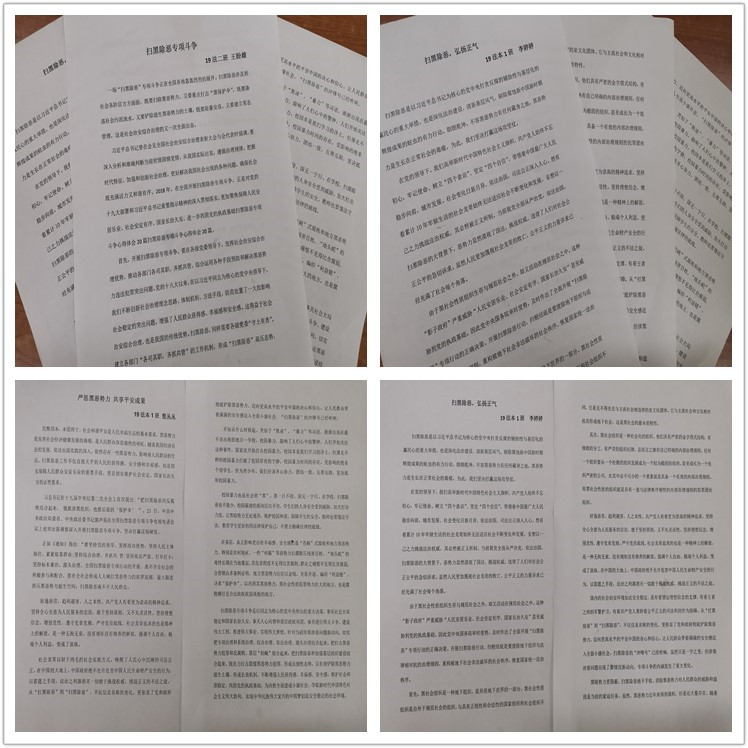 随后,各年级辅导员按照“扫黑除恶网上集中宣传月”活动通知动员班级同学开展班会、QQ群讨论、微博公众号宣传等。同时,以年级为单位开展不同形式的“扫黑除恶”主题活动,17级以法学专业员工为主,其它年级积极参与,开展“扫黑除恶”手抄报征集活动,同学们制作手抄报图文并茂,不仅用文字向大家普及了面对黑恶势力的有效做法,而且用漫画生动反映出黑恶势力的丑恶;18级同学通过录制视频来倡导大家要勇于与黑恶势力多斗争,要远离校园欺凌,向全院员工输送反邪教知识和法律法规知识,使员工远离违法与犯罪,增强遵纪守法意识,构建和谐校园;为使同学们深刻了解“扫黑除恶”的宗旨,19级员工则开展征文活动,文章主题涉及黑恶势力的舆情隐患、处置、防范措施等,同学们通过文章的撰写加深了对黑恶势力的了解和法律意识的强化。