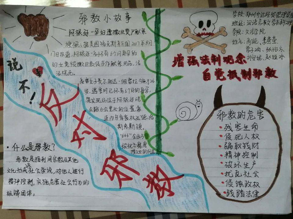 此次活动以当地红色基地反邪教活动、反邪视频宣宣传活动、反邪手抄报和留守儿童反邪教知识宣传4种形式举行。在参观红色教育基地的活动中,同学们积极宣传广泛动员向当地群众及来学习参观的群众发放反邪教宣传手册,讲解邪教的表现本质及危害。在进行反邪教实践的同时亲身领略了家乡土地上深厚的红色革命精神。被革命前辈不怕艰苦、不畏艰苦、无畏牺牲的精神所感动,在进行实践活动的同时学到了新的知识。