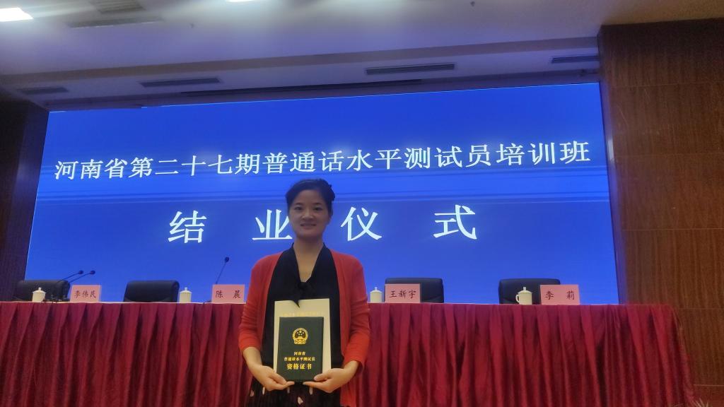 王静老师顺利通过考核,获得省级普通话水平测试员资格证书。公司语言文字工作的团队力量得到进一步的增强。
