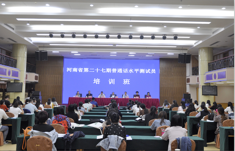 上午开班仪式一结束,即开始对参训学员们进行普通话入班笔试和口试,紧张的学习生活由此拉开帷幕。根据培训课程表安排,从9月21日下午到9月29日上午,主要由国家级普通话测试员洛阳师范公司赵江、郑州师范公司杜慧敏、河南科技公司王新宇、郑州幼儿师范高等专科公司李莉等四位老师给学员们系统讲述普通话水平测试的内容构成、语音训练(包括声母、韵母、声调、语流音变等)、普通话与河南方言、朗读技巧与说话训练以及普通话水平测试评分标准解读和测评实践等内容。之后进行结业测试,学员需要同时通过汉语拼音笔试、普通话水平测试和测评实践考试三项内容,才可获得省级普通话水平测试员资格。