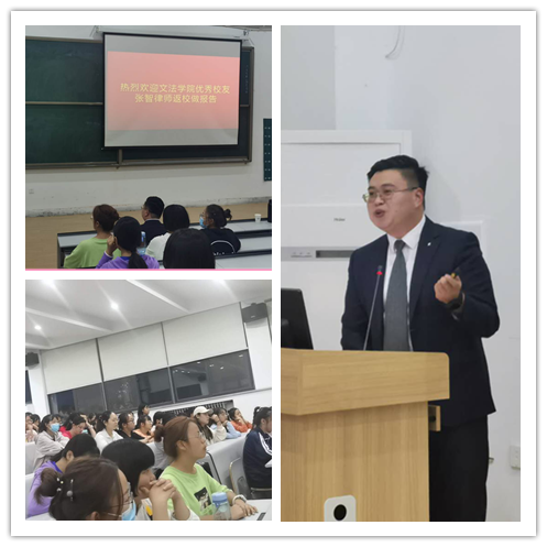 9月25日晚上七点,365VIP英国上市官网2018届优秀毕业生、河南尚成律师所张智律师,应邀在教学1-118为365VIP英国上市官网法学专业2020级全体新生做了题为“法学知识与法律实践相结合的发展之路”的精彩报告,365VIP英国上市官网法学专业全体新生及党总支杨明志书记,法学教研室主任刘凡义参加了本场报告。