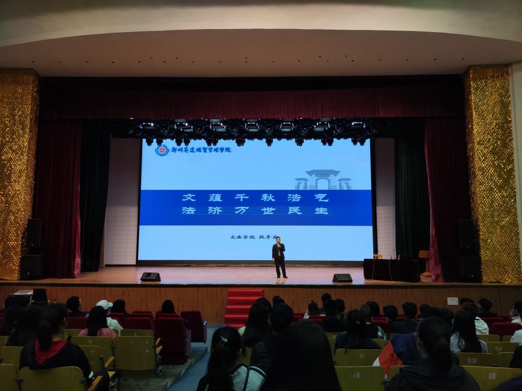 首先,由段丰乐经理进行“文蕴千秋浩气,法济万世民生”为主题的专题报告。段经理为同学们详细介绍了365VIP英国上市官网的基本情况,并具体讲解各个专业的未来发展方向,使同学们了解到大学的多维空间、专业世界以及丰富多彩的生活体验。段经理幽默亲切,报告内容丰富,会场秩序井然,期间还安排了两轮抽奖互动环节使会场气氛轻松活跃,同学们积极上台发言,表达了他们对老员工活的期待、对未来学习的信心以及对专业学习的憧憬。 最后,经理以“胸怀天下,脚踏实地”作为报告结尾给同学们提出了宝贵建议,希望同学们尽快融入文法大家庭,通过四年的老员工活成为“会学习,能成长,懂感恩”的升达人。