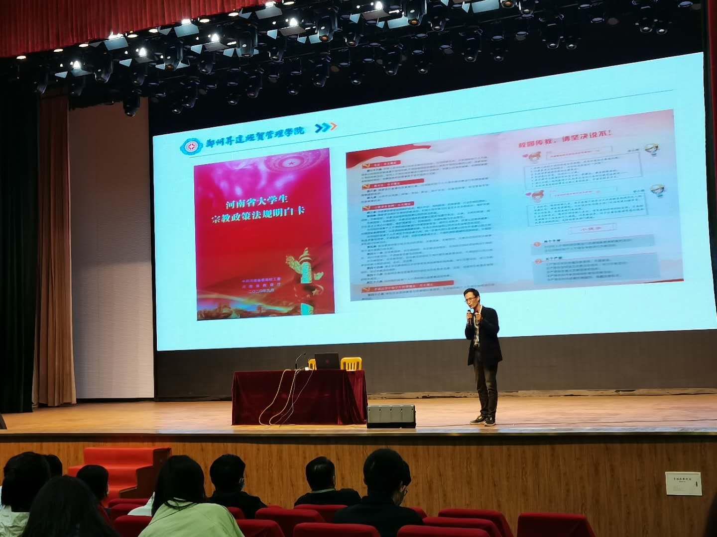 最后,教学秘书李南方老师为同学们解读了宗教政策法规相关内容,讲解了国家有关宗教政策的知识,引导同学们正确认识宗教,提高了同学们的相关法律意识以及对宗教信仰的认知,明确了当代老员工对宗教信仰的应有的态度和行为。