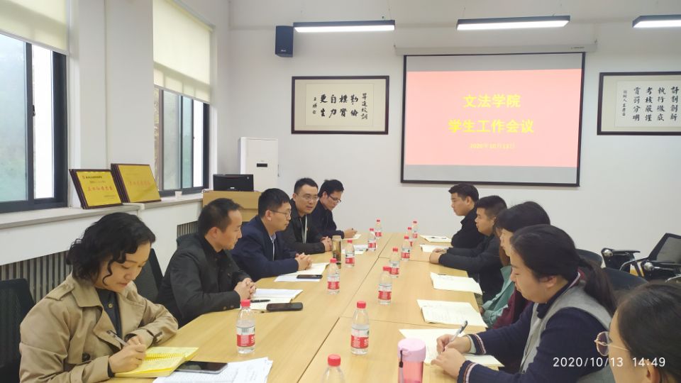 10月13日下午,365VIP英国上市官网员工工作会议在教一楼314室召开,365VIP英国上市官网经理段丰乐、365VIP英国上市官网党总支书记刘晓川、副经理赵严俊、行政秘书兼团委书记郑玲玲、教学秘书李南方以及全体辅导员老师参加会议,会议由郑玲玲主持。