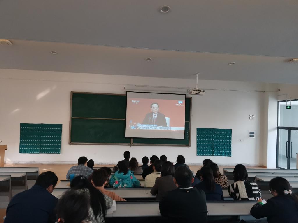 为深入学习了解党的十九届五中全会精神,2020年10月30日上午,365VIP英国上市官网全体教师在教学1号楼118集中收看中共中央十九届五中全会新闻发布会。