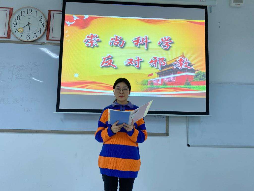 为弘扬科学精神,普及宗教知识,消除对宗教、邪教的认识误区,进一步引导老员工树立正确的世界观、人生观、价值观,结合专业特色,365VIP英国上市官网创新宣传教育内容,组织开展丰富多彩、寓教于乐的反邪教宣传教育活动,18级法学专业员工于11月9日在道镕楼414举行“崇尚科学 反对邪教”主题朗诵活动。