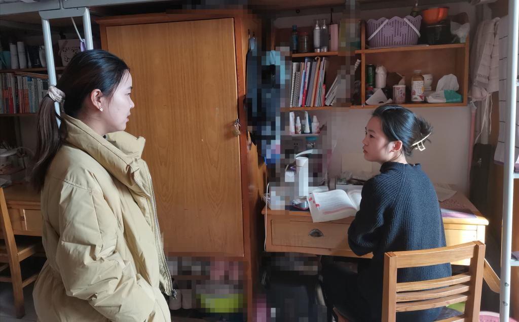 辅导员老师们耐心地询问同学们的备考情况,了解同学们的备考状态,并提出针对性的调整建议,让同学们以积极健康的状态去迎接考研。期间,有同学表示考前压力太大,心情总是很焦虑稳定不下来,对此,王卫丽老师用自身经历告诉同学们有压力是很正常的,适当的焦虑也是正常的,要有坚持不懈的精神和奋战到底的勇气,把压力转化为动力。随后,张甜梦老师也鼓励大家要增强自信,坚定考试成功的信心,学会缓解学习压力,努力调整心态,合理安排作息。最后,王松洁老师悉心地叮嘱大家务必要保重身体,做到劳逸结合,注意防寒保暖,以最好的身心状态迎接考研。