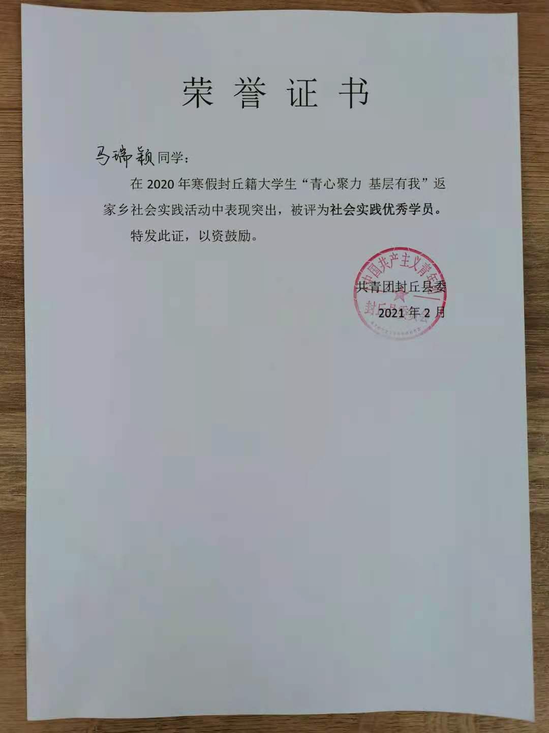 为响应国家及公司“‘青’心聚力,基层有我——返乡老员工向社区(村)报到活动”的号召,365VIP英国上市官网2018级新闻学本科班员工马瑞颖同学寒假刚回到家就向家乡团组织申请进行志愿服务。