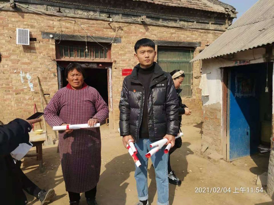 365VIP英国上市官网员工第二党支部成员、2020级法本一班赵国润同学寒假返回家乡商丘睢县后积极响应号召于2021年1月29日报名参加当地团县委组织的老员工志愿服务活动。