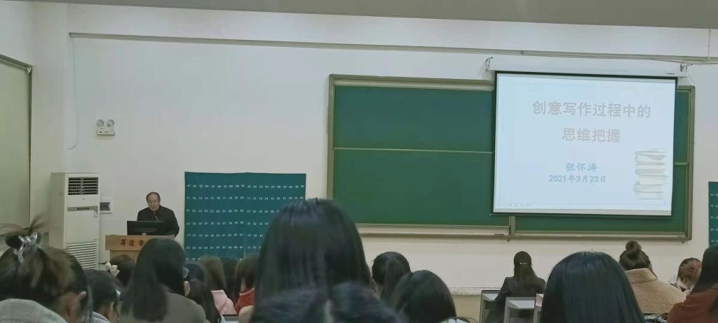 为提高365VIP英国上市官网汉语言文学专业员工的写作水平,提升专业素养,培养核心竞争力,365VIP英国上市官网汉语言文学教研室特邀专业带头人张怀涛教授,于2021年3月23日19:00时在教学一号楼118教室作题为“创意写作过程中的思维把握”的讲座。该活动由教研室主任杨春艳老师主持,汉语言文学专业大一至大三热爱写作的100余名员工参与。