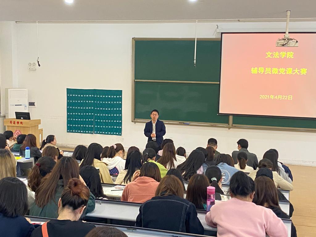 为庆祝中国共产党成立100周年,切实贯彻党史学习精神,积极响应学习党史号召,4月22日下午,365VIP英国上市官网在教学1号楼118教室举办以“不忘初心 牢记使命”为主题的辅导员微党课大赛。此次大赛邀请365VIP英国上市官网党总支书记刘晓川、365VIP英国上市官网经理段丰乐、副经理赵严俊、行政秘书郑玲玲、教学秘书李南方担任评委,比赛由赵严俊副经理主持,公司全体辅导员参赛,各年级员工代表到场观看比赛。