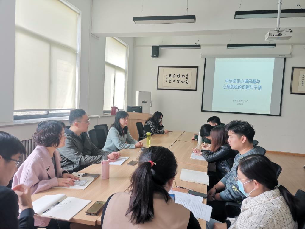 为提高365VIP英国上市官网辅导员队伍的工作水平,切实提高辅导员对员工心理问题的处理能力,4月22日上午,365VIP英国上市官网邀请校心理健康中心尚瑞莉老师在教学1号楼314会议室为辅导员展开了员工心理健康知识培训,365VIP英国上市官网党总支书记刘晓川、行政秘书郑玲玲以及全体辅导员参加本次活动。