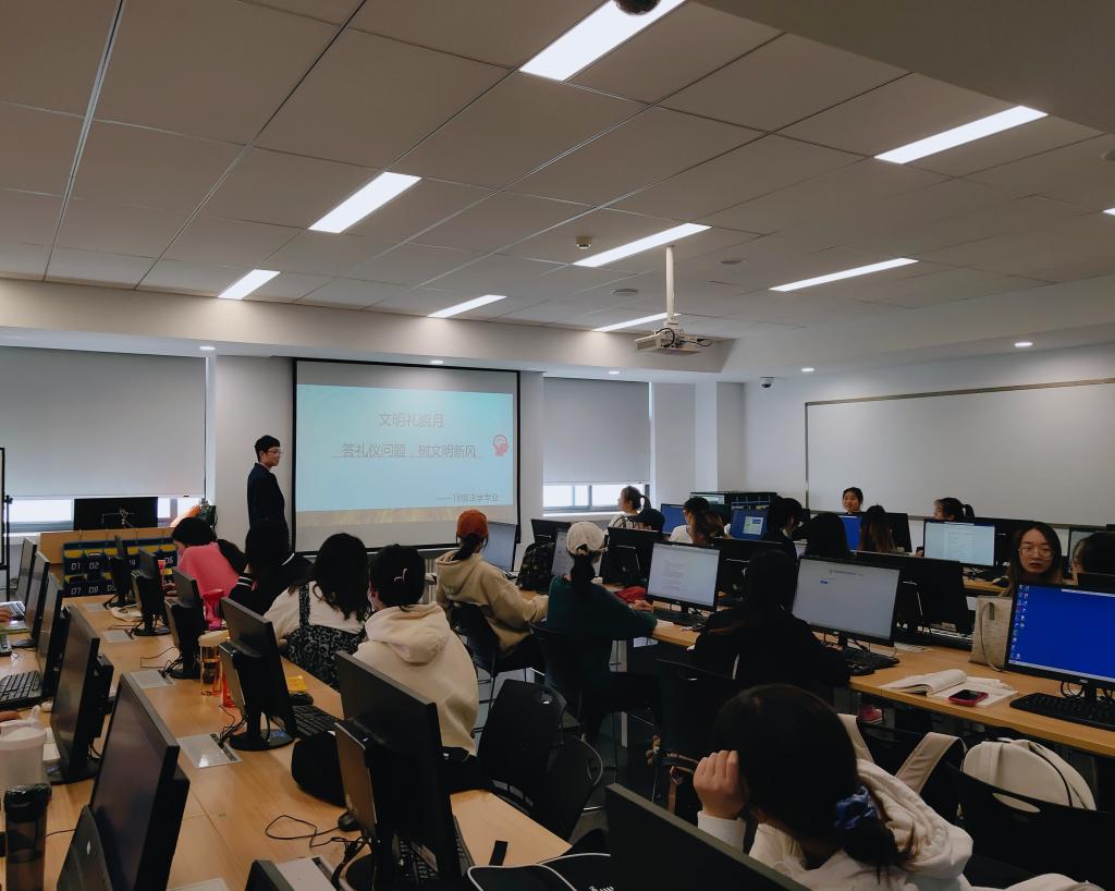 活动以PPT展示和线上问卷调查的形式进行,同学们分成6组,每个小组对这些礼仪知识问题进行讨论,选出代表作答。通过知识竞答的形式调动了同学们的积极性,也提高了同学们的文明意识。问卷调查环节,各班班长将准备好的问卷发送给大家,同学们根据自己的理解和认识进行填写,不仅对同学们文明礼仪知识进行初步检验,而且还更好地引导同学们重视礼仪、反思自己、提高自己,进而营造文明的学习氛围,争做文明老员工。
