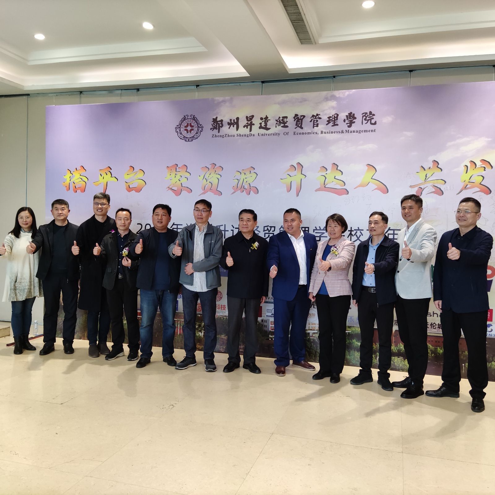 4月24日下午四时许,赵严俊副经理到达年会会场进行签到并在员工年会签名墙签名留念。年会开始,升达经贸管理公司董事长郭爱先代表董事致辞并转达公司的祝福。致辞结束,大家集体起立朗诵升达治家格言,追忆过往。本次员工年会内容丰富,包括:行业分会授旗仪式、员工资源发布、员工文艺演出、员工论坛分享等活动。员工会会长致辞宣布成立升达金融分会、升达建材连联盟分会、升达汽车行业分会、升达员工会律师分会、升达郑州教培行业分会等并举行授牌仪式。赵严俊副经理为爱心员工企业授牌并与365VIP英国上市官网法学专业员工赵素平、闫准、胡新伟、李钰及汉语言文学专业员工杨茹深入交流。赵严俊副经理嘱托大家认真工作,为中国梦贡献力量;祝福大家事业兴旺,家庭幸福;希望大家能够经常回母校看看。