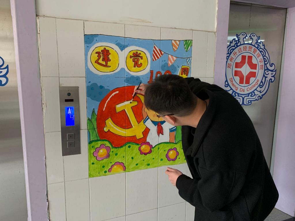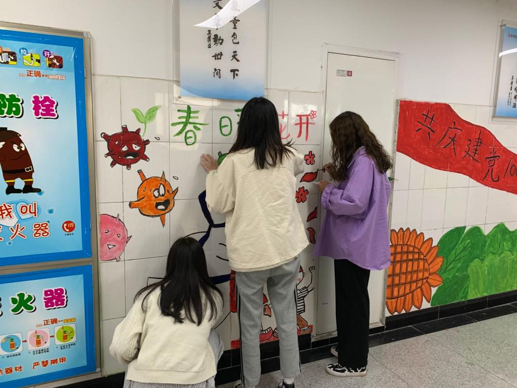 本次环境创设以百年党史和抵御疫情为主题,同学们以流彩、线描、水粉画、手工贴纸等多种形式进行墙壁创设。内容丰富新颖,部分同学在创设的过程中融入了漫画和古风元素,有的挥笔勾线、有的泼墨涂色,吸引了许多同学驻足观看。生动形象的画面让人犹如身临其境,流光溢彩的配色带来的视觉刺激疾冲心灵,同学们用多彩的画笔和丰富的想象力从不同角度描绘祖国的大好河山、国泰民安的盛世以及自己对祖国、对党的歌颂与热爱!