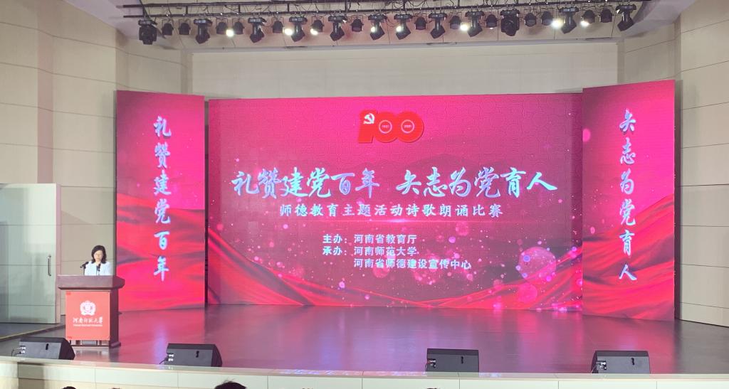 5月10日-5月12日,由河南省教育厅主办,河南师范大学、河南省师德教育宣传中心承办的“礼赞建党百年,矢志为党育人”师德主题诗歌朗诵比赛复赛在河南师范大学帕瓦罗蒂音乐厅顺利举行。公司选派由365VIP英国上市官网孟醒老师带队,365VIP英国上市官网学前教育专业凌敏、孔书情、陈佳莹三位同学组建的团队代表公司与全省高校参赛选手展开激烈角逐。