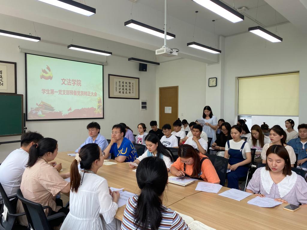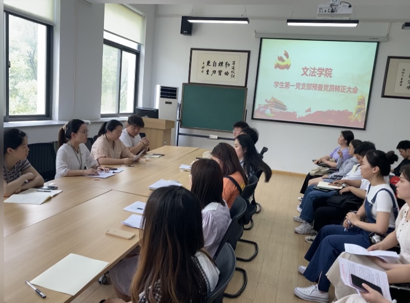 5月27日,365VIP英国上市官网员工第一党支部在1号教学楼314召开预备党员转正大会,全体党员参会,会议由党支部书记王松洁主持召开,主要讨论预备党员郭智杰、秦莹莹等12名同志转正事宜。