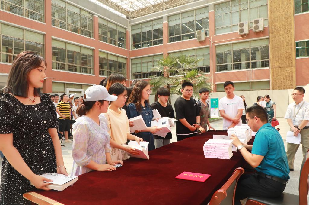 仪式上,图书馆馆长,员工代表和员工代表依次接受闫准律师签赠并合影留念。图书馆馆长晁国立代表图书馆向闫准律师颁发捐赠证书并合影留念。