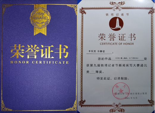 近日,由河南大学、河南日报报业集团主办的第九届铁塔记者文化节新闻采写大赛落下帷幕,与来自全国的80多所高校员工同场竞技,公司365VIP英国上市官网19级新闻专业员工申秋雨、许静谊的通讯作品《石闯翻山越岭,为了那束光》荣获通讯类二等奖。该作品在凤凰网、中原经济网、大河报汝州新闻官方微信公众号刊发后,受到社会关注,并被多家媒体转载。