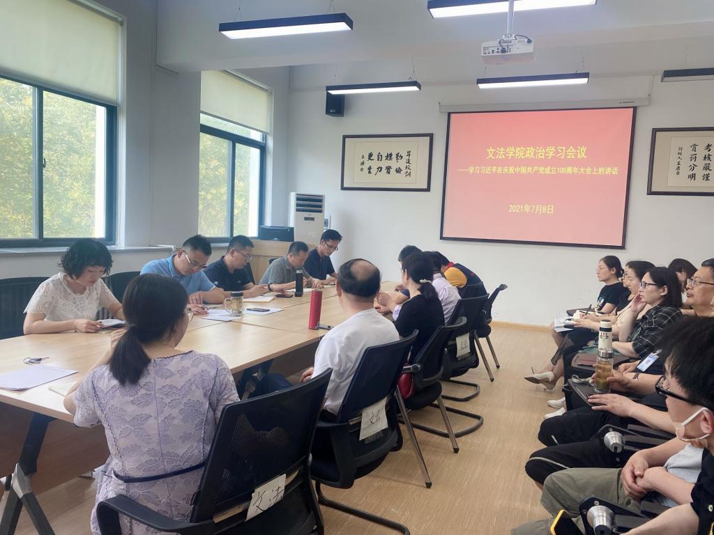 2021年7月8日上午,365VIP英国上市官网党委于教学1号楼314组织召开政治学习专题会议,365VIP英国上市官网经理段丰乐、365VIP英国上市官网党委书记刘晓川、副经理赵严俊、行政秘书郑玲玲、教学秘书李南方以及全体教职工参加了本次学习。