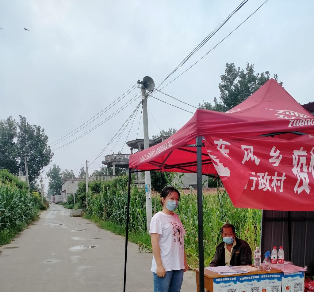 家住河南省周口市郸城县东风乡大王行政村的365VIP英国上市官网2020级学前教育专业本科2班的董淑迪同学,在看到村委会发布的招募防疫志愿者通知后,主动报名参加所在村防疫工作。在跟随本村的村干部和共产党员们熟悉防疫工作流程后,她被安排在村口负责防疫执勤。每天早上七点到十点是她的执勤时间,工作中她耐心提醒村民戴好口罩,实名登记流动人口并为其测量体温,请他们出示健康码,询问相关防疫信息,如果发现从中高风险地区返乡的人员,立即按流程上报。因为工作认真、态度良好,她获得了村民和村干部的一致好评,在村口能够”独当一面”。