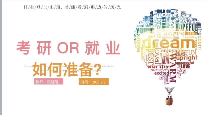 段曈曈老师针对未来考研和就业的选择问题向新生们做了分析,并对不同选择的努力方向给出了明确的建议。