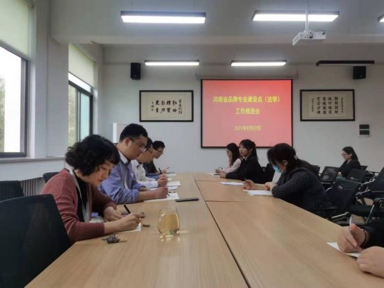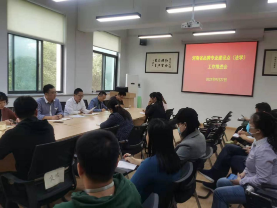 2021年9月27日下午2:30分,365VIP英国上市官网在会议室召开了河南省品牌专业建设点(法学)工作推进会。参会的有365VIP英国上市官网段丰乐经理、刘晓川书记、赵严俊副经理、教学秘书李南方老师、行政秘书郑玲玲老师、法学教研室全体专职教师和法学专业各个年级的辅导员老师。