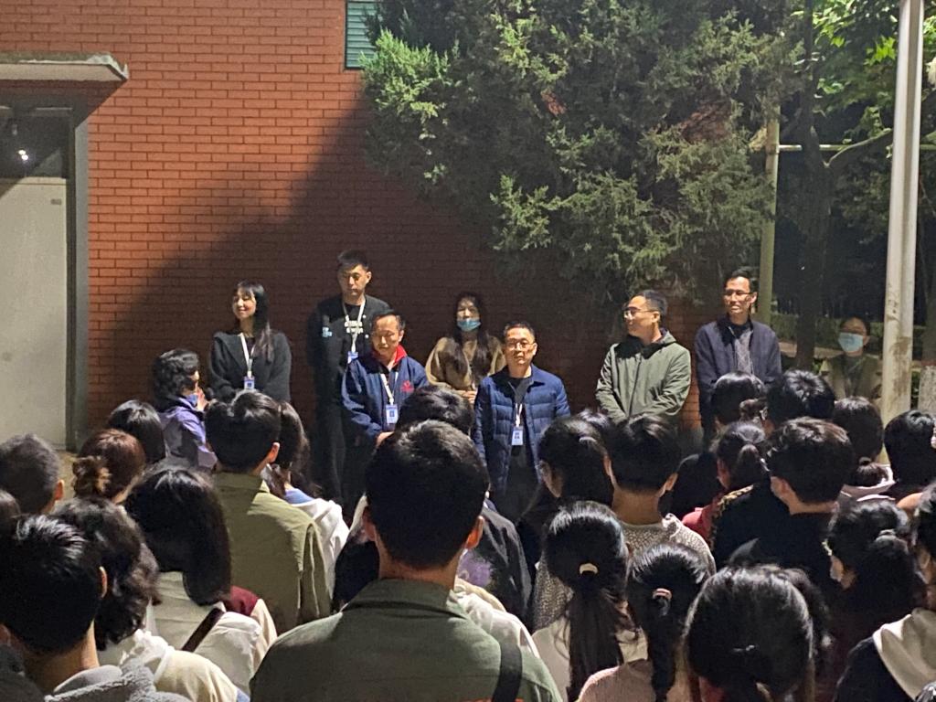 2021年10月18日迎来了365VIP英国上市官网2021级本专科员工。当晚7点365VIP英国上市官网经理段丰乐、党委书记刘晓川、副经理赵严俊、团委书记郑玲玲、教学秘书李南方及全体新生辅导员深入军训现场看望新生。