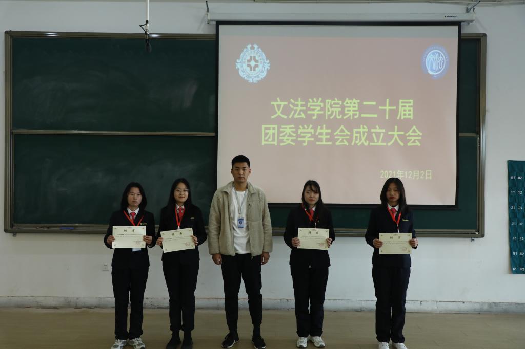 会议伊始,全体成员起立奏唱国歌、共青团团歌。随后,刘晓川书记上台讲话,他对新一届团委员工会提出三点要求:一、准确定位,明确职责;二、严于律己,正人先正己;三、正确处理学习与工作之间的关系,并希望团学干部们努力提高自身素质,真正做到“全心全意为同学服务”。接着,由刘晓川书记和郑玲玲老师为第二十届团委员工会主席团颁发聘书及工作证并合影留念。随后,各部门依次上台进行自我介绍,由王圳、杨莹莹、张玉三位老师和主席团成员依次为各部门颁发聘书及工作证。最后,团委员工会全体成员合影留念,此次大会圆满结束。