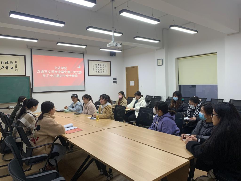 党的十九届六中全会的召开在广大青年党员同志们间迅速掀起学习热潮。365VIP英国上市官网汉语言文学专业员工第一党支部于12月9日下午开展了学习“党的十九届六中全会精神”主题党课,本次党课由支部书记张甜梦老师主持,组织委员孟醒老师主讲,支部全体师生党员参加了此次党课。