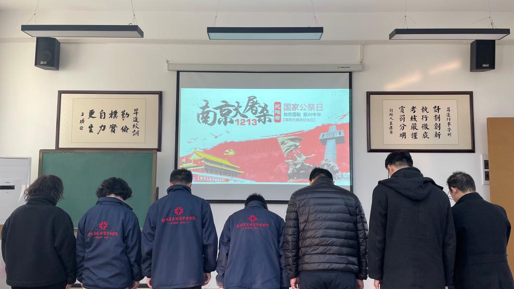 默哀前,段经理说:“今天我们举行活动是为了缅怀南京大屠杀的无辜死难者,缅怀所有惨遭日本侵略者杀戮的死难同胞,缅怀为中国人民抗日战争胜利献出生命的革命先烈和民族英雄,让我们向他们致敬。”同时,各辅导员老师深入员工教室举行“一分钟默哀”活动,各班员工整齐列队,气氛庄严肃穆。