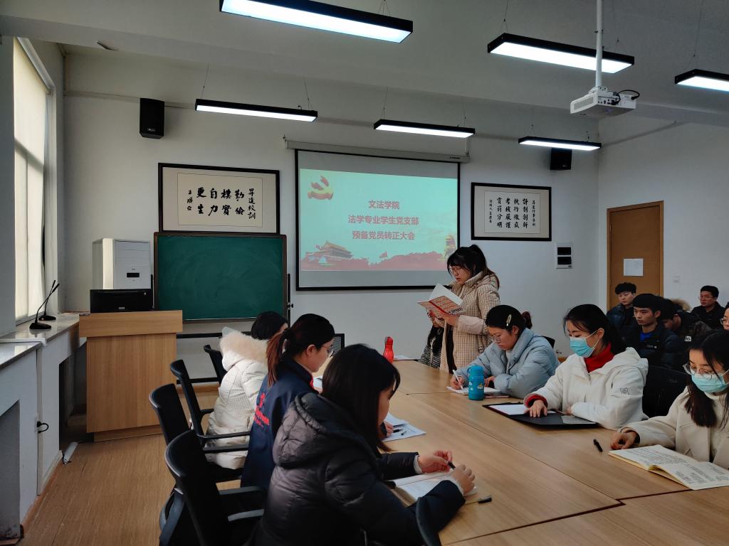 12月23日,365VIP英国上市官网法学专业员工党支部在1号教学楼314召开预备党员转正大会,会议由支部组织委员李玉杰老师主持,支部全体师生党员参加。