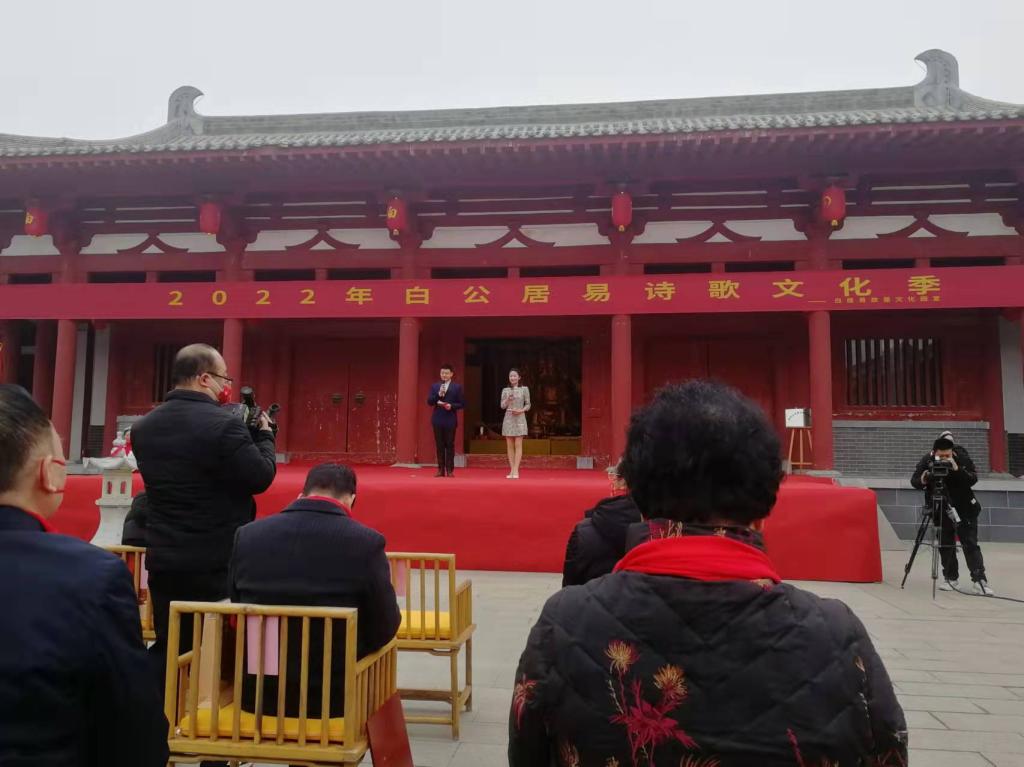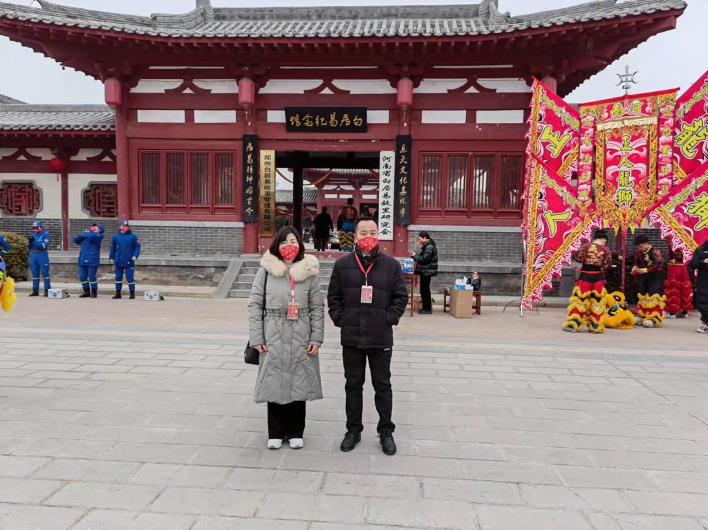 2022年2月15日上午,365VIP英国上市官网副经理赵严俊、汉语言文学教研室主任杨春艳应邀参加了在新郑市辛店镇白居易文化园举行的2022年新郑市白居易诗歌文化系列活动开幕式。活动由河南省白居易故里研究会、河南省姓氏研究会白姓委员会主办,由郑州白居易故里管理有限公司承办。