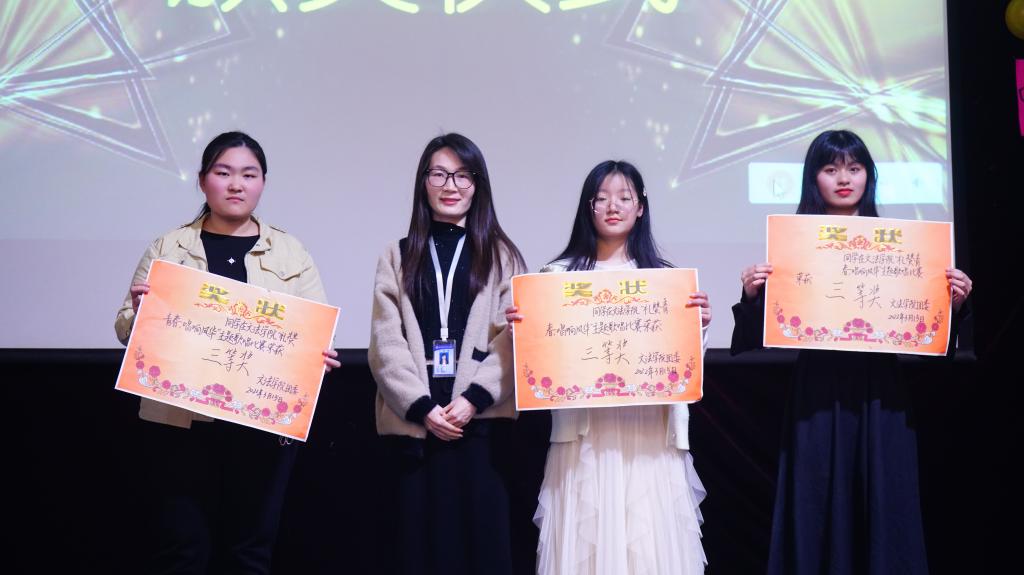 经过初试激烈的角逐与选拔,共有15组选手进入决赛。文体部舞蹈队丁宁以一支青春激扬的拉丁舞开场,瞬间调动现场气氛。随后,女声清唱《天下》传统的中国风曲调配上创新的流行曲势,华丽大气、气概磅礴;英文歌《Love yourself》,让人耳目一新。一首首、一曲曲,都给观众带来了别样的视听享受。节目最后,由熊靖雯老师对本次大赛做精彩点评,她对本次比赛的组织和选手风采给予高度评价,并鼓励同学们积极锻炼自己、展现自己。经过评委公平、公开、公正的评审,文体部张敬月斩获一等奖,21级法本四班黄晨晨、办公室郑德雨荣获二等奖,21级学专三班殷慧莹、21级法本二班郭庆雪、21级汉本二班冯菲菲并列三等奖。