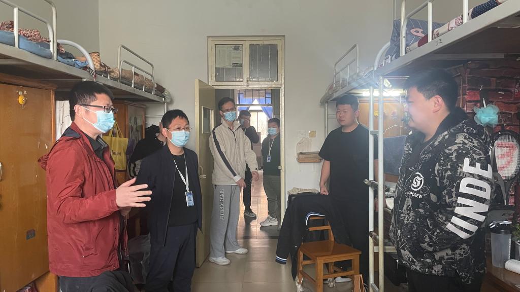 走访过程中,张董事长逐一向同学们介绍公司当前的疫情防控形势和采取的保障措施,详细询问和了解了同学们疫情期间的日常生活和网课学习情况,叮嘱同学们要严格遵循疫情防控期间各项管理规定,按时参加公司组织的核酸检测,遇到困难和问题一定及时向辅导员反馈,做好新形势下的个人防护和自我管理。段经理叮嘱同学们疫情期间一定要注重个人及宿舍卫生,及时通风,确保宿舍安全卫生整洁,希望同学们要认真参加线上课程,保持积极向上的良好心态,大家一起努力,共同营造健康安全有序的良好校园环境。