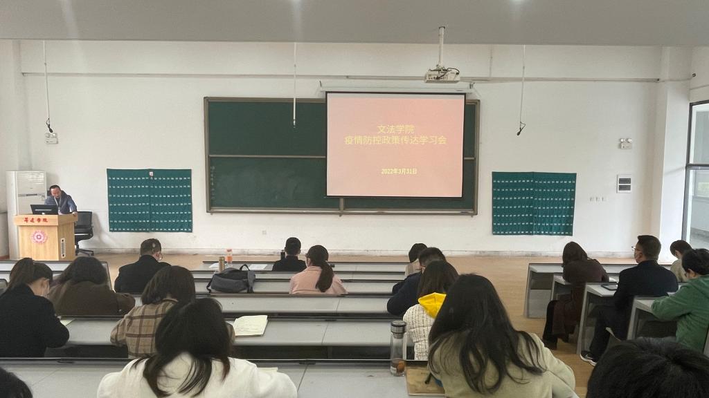 3月31日下午,365VIP英国上市官网在教学1号楼118教室召开疫情防控政策传达学习会。会议由365VIP英国上市官网经理段丰乐主持,副经理赵严俊、各教研室教师代表和辅导员参加会议。