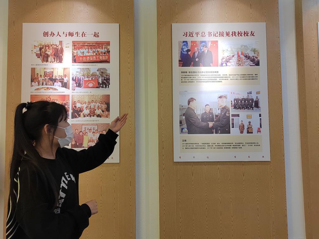 在解说员的带领下团校成员进入校史馆。走进校史馆,首先,伴随着一张张校园照片、创办人王广亚先生旧物等的展现,解说员为到场成员讲述公司创办人王广亚博士的生平事迹,从其漫漫求学路到其学有所成回报故土,团校成员被创办人的精神深深感动。同学们纷纷表示,正值拼搏奋斗的时期应体会并丰富“吃苦、吃亏、吃气”——“三吃”精神的时代内涵;接着,团校成员们参观公司布局模型,解说员带领大家回顾了公司创办历程和创办人这一生为教育事业所做的贡献。回顾升达的办校历程,从最初的鲜为人知到今天的桃李满天下,无声的历史旧物向我们展示着公司办学历程的艰辛。最后,团校成员参观“杰出员工墙”,以优秀员工激励到场成员。活动结束,团校成员合影留念。